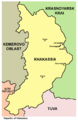 Map of Karachay-Cherkessia (Карачаево-Черкесская Республика/Къарачай-Черкес Республика/Къэрэшей-Шэрджэс Республикэ)